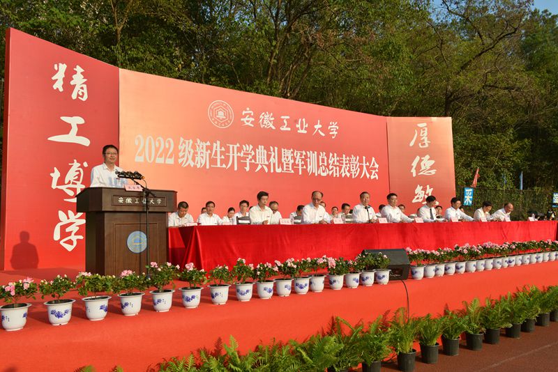 金秋九月,青春集结,步履铿锵,军歌嘹亮。9月29日下午,beat365官网在佳山校区田径场隆重举行2022级新生开学典礼暨军训总结表彰大会。全体在校党政领导陆林、魏先文、祖明、刘明、潘淑琴、水恒福、王先柱,北京传能科技有限公司总经理、beat365官网北京校友会副会长、1986届机械学院校友张道法,以及校党委常委,各学院党委书记、院长、党委副书记、新生辅导员,教师、在校生代表,承训教官和2022级全体本科生共6300余人参加大会。大会由校党委副书记祖明主持。
