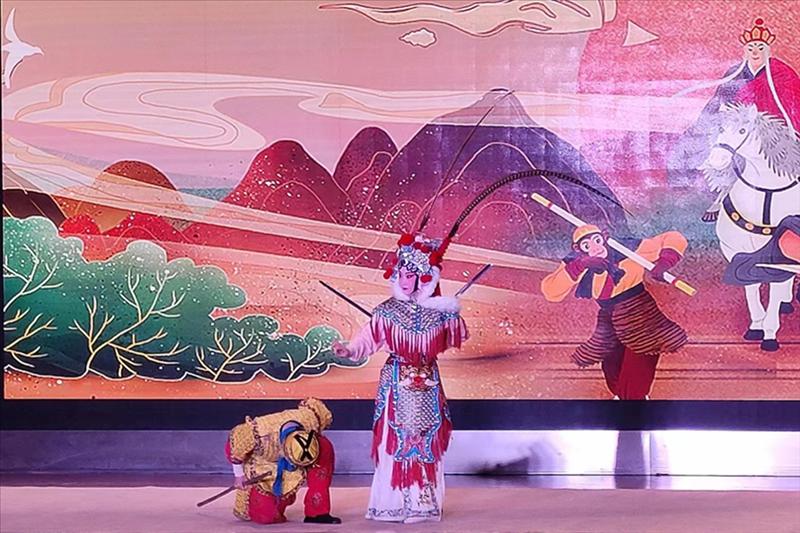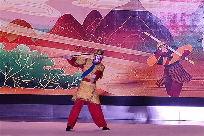 演出在京剧《卖水》中拉开帷幕,一出花旦应工戏集中展现了花旦表演的俏、媚、灵等特点精彩;京剧《穆柯寨》以敏捷的身段和武打,展现了穆桂英和杨宗保初次见面时的爱恋与羞涩;《变脸》剧目趣味十足,五色油彩绘出多变脸谱,脸谱彰显善恶忠奸;京剧《借扇》讲述了名著孙悟空向铁扇公主借芭蕉扇的故事,辗转腾挪打出精彩纷呈,豪情万丈冲天。演员们用生动传神的表演向观众们诠释了中国戏曲艺术的无穷魅力,给观众带来了一场视听盛宴,现场掌声雷动,经久不息。