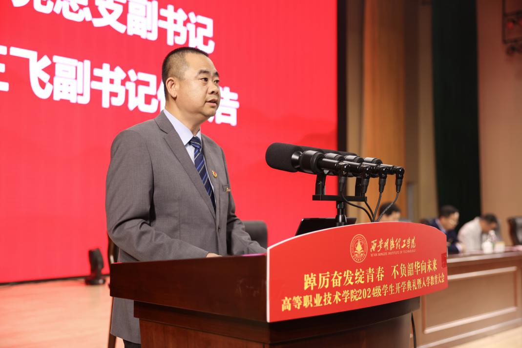 金秋时节,硕果飘香。为引导2024级学生尽快了解大学生活、适应新环境、转变新角色,高等职业技术学院于10月8日在四季廊桥报告厅隆重举行了2024级学生开学典礼暨入学教育大会。学校党委副书记、纪委书记、副校长白秦川,财务总监马晓军,高等职业技术学院领导班子、各专业负责人及教师团队、全体辅导员、教学管理人员以及2024级新生共同参加了会议。会议由学院党总支书记王庭良主持。