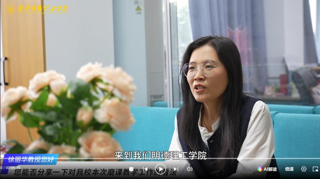本阶段磨课工作特别邀请工科组贾蕊教授和文科组徐丽华教授进行现场采访。贾教授从如何克服在教学大赛中遇到的挑战及自己的科研经历两个方面给老师们提出了宝贵建议。徐教授对beat365磨课工作、对老师们教学创新及产学研融合工作方面提出了宝贵建议。