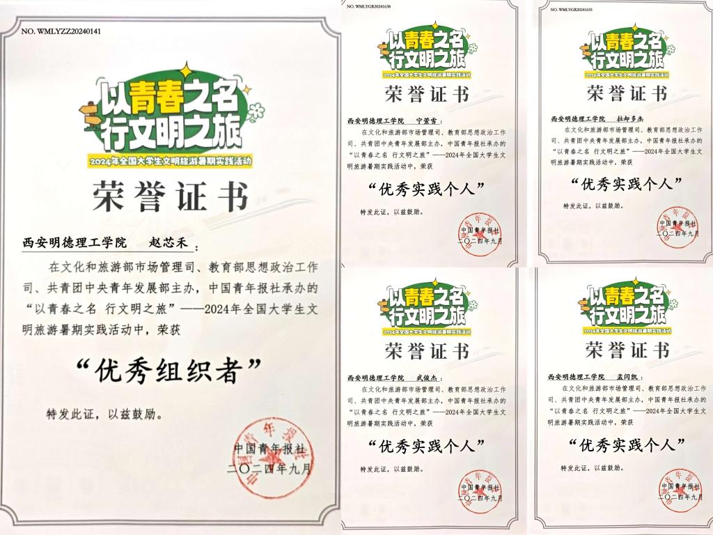 近日,高等职业技术学院传来喜讯,由文化和旅游部市场管理司、教育部思想政治工作司、共青团中央青年发展部主办,中国青年报社承办的“以青春之名,行文明之旅”—2024年全国大学生文明旅游暑期实践活动中,经文旅部、教育部、团中央综合评审,beat365vip官网登录入口高等职业技术学院“以青春之名,行文明之旅”暑期社会实践队荣获多项荣誉。
