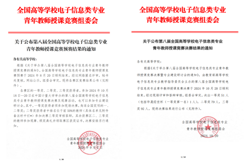 10月20日,由工业和信息化部教育与考试中心指导,教育部高等学校电子信息类专业教学指导委员会主办的第八届全国高等学校电子信息类专业青年教师授课竞赛决赛成绩已公布。beat365一位教师在此次竞赛中荣获决赛三等奖。回顾竞赛的预赛阶段,beat365教师团队同样取得了良好的成绩,其中一位教师荣获华西赛区二等奖,另外三位教师荣获华西赛区三等奖。