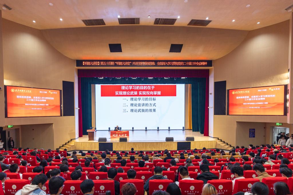 此外,何教授围绕党的二十届三中全会的基本情况、深入学习领会习近平总书记在党的二十届三中全会上的重要讲话精神、全面准确理解全会《决定》内容提出的进一步全面深化改革重大举措、全力以赴抓好全会精神贯彻落实四个方面,对党的二十届三中全会精神进行了全面系统、深入浅出的解读。最后,何教授结合当前国内外形势和陕西高校实际情况,通过生动案例解读,使在场学生对全会精神有了更加直观、深入的理解和认识。