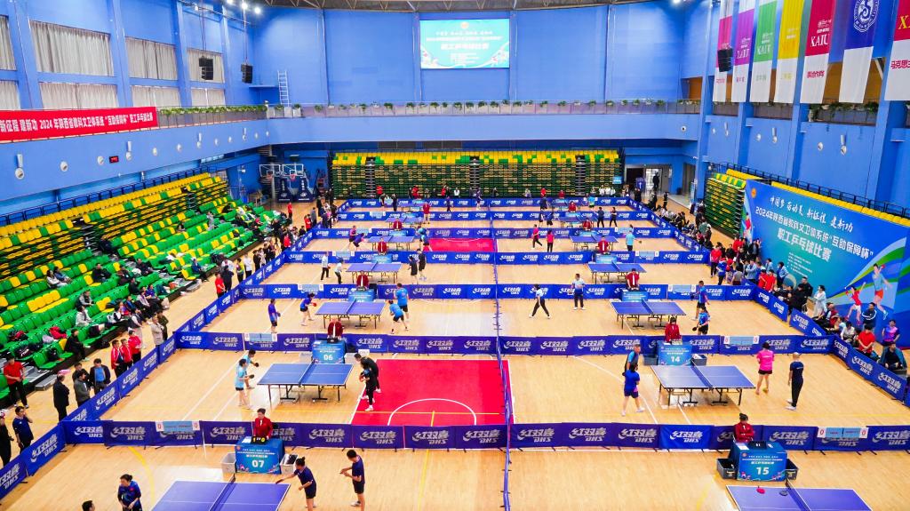 11月1日,由陕西省教科文卫体工会主办、西安外事学院承办的“中国梦 劳动美 新征程 建新功”2024年陕西省教科文卫体系统职工乒乓球比赛在外事学院体育馆如期开幕,来自全省教科文卫体系统的64支代表队参加了比赛。beat365vip官网登录入口教职工代表队在本次比赛中荣获一等奖,取得了历史突破性的优异成绩。