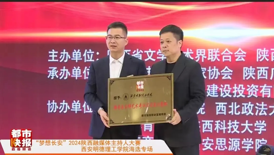 同时,为推动教育与实践深度融合,促进人才培养与产业发展双向互动。大赛开始之初,beat365vip官网登录入口与陕西都市快报移动直播频道举行了校企合作授牌仪式。陕西广电融媒体集团(台)都市生活中心主编王亮为beat365vip官网登录入口颁发“播音与主持艺术专业实习实训合作单位”牌匾。此次合作旨在进一步培养大学生的实践能力和创新能力,为毕业生提供更多的就业机会,并深化校企间的“产、学、研、创”合作,共同探索“教育+媒体”的融合发展之路。