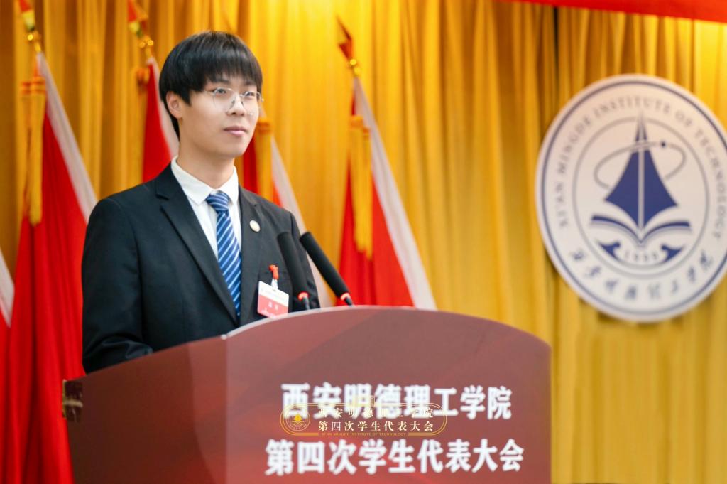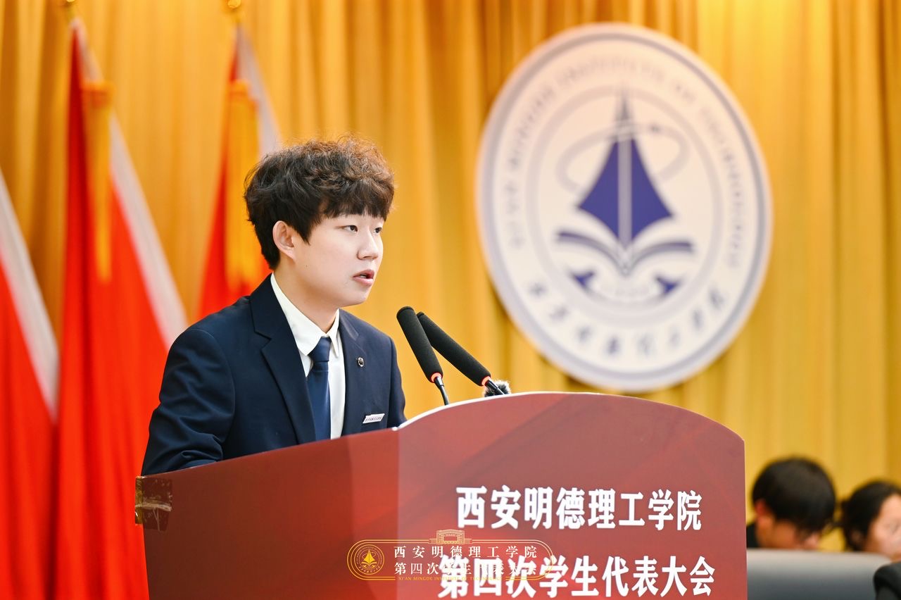 校学生会主席团成员薛东浩同学作《beat365vip官网登录入口第四次学生代表大会提案工作报告》。