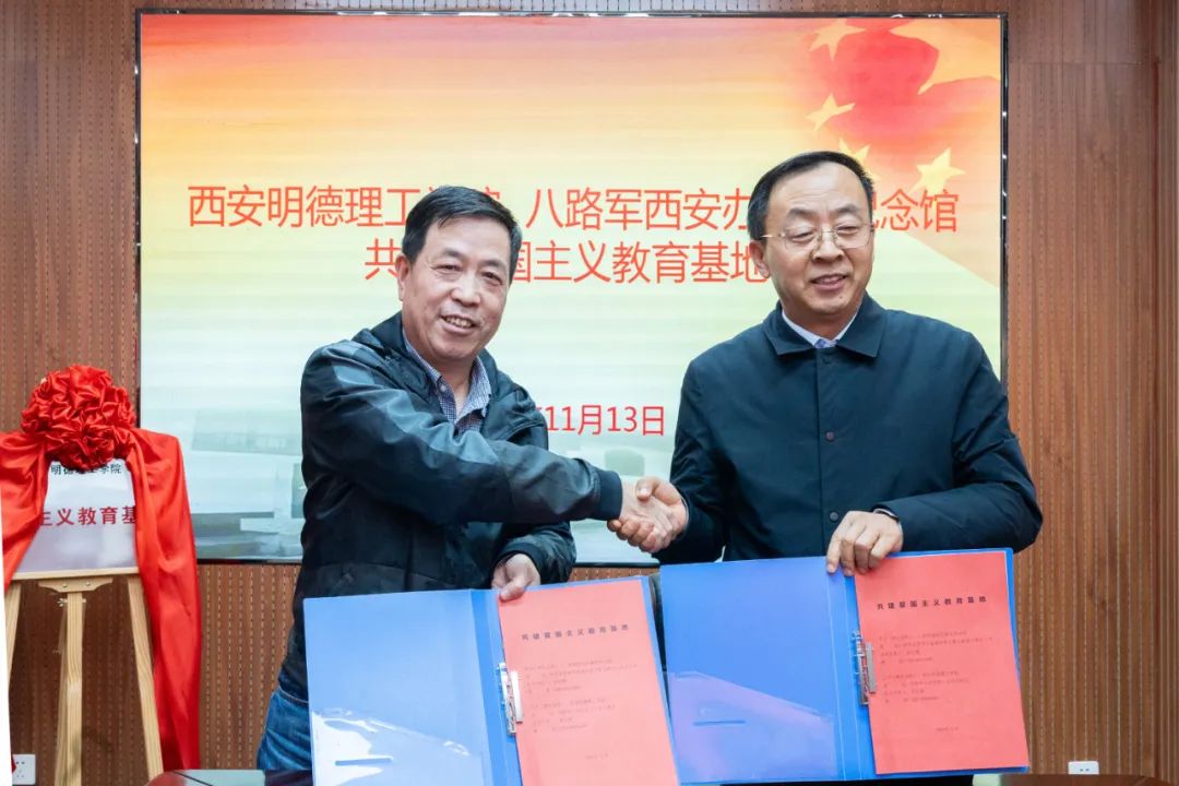 11月13日beat365vip官网登录入口与八路军西安办事处纪念馆正式签署合作协议,共建爱国主义教育基地。beat365vip官网登录入口党委副书记、副校长白秦川,八路军西安办事处纪念馆副馆长陈宏川,党委组织宣传部部长高超,马克思主义学院与通识教育学院党委书记王君涛,教务处副处长文亮,以及师生代表共计50余人参加揭牌仪式。会议由八路军西安办事处纪念馆宣教部主任王卉主持。