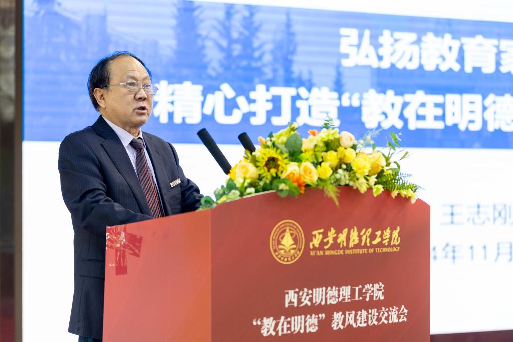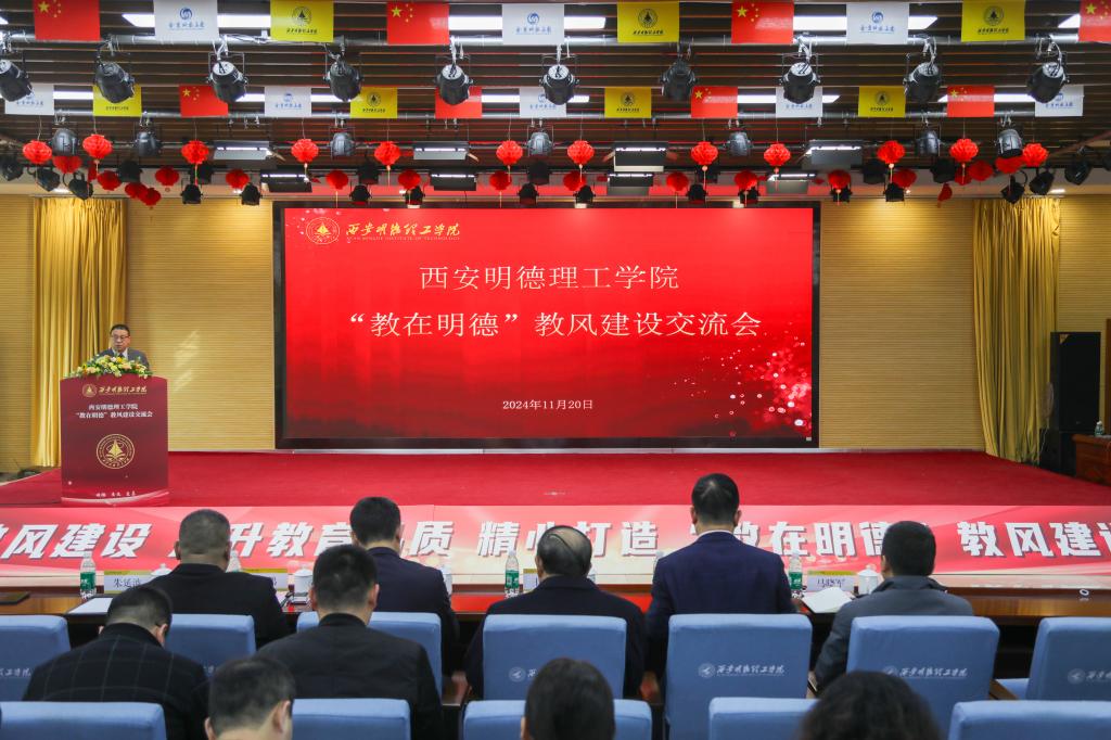 为贯彻落实全国教育大会精神,扎实开展教育家精神铸魂强师行动,精心打造“教在明德”教风建设品牌,不断提高教风建设水平和教育教学质量,营造尊师重教、求实创新的教学氛围。学校于11月20日下午在建德楼203报告厅召开“教在明德”教风建设交流会。校长王志刚、党委书记马川鑫、副校长陈鹏、副校长王斌宁、财务总监马晓军、各职能部门、教辅单位负责人、各二级学院领导班子成员、办公室主任、专业负责人、教师代表以及教务处全体人员共300余人参加会议。会议由副校长朱延波主持。
