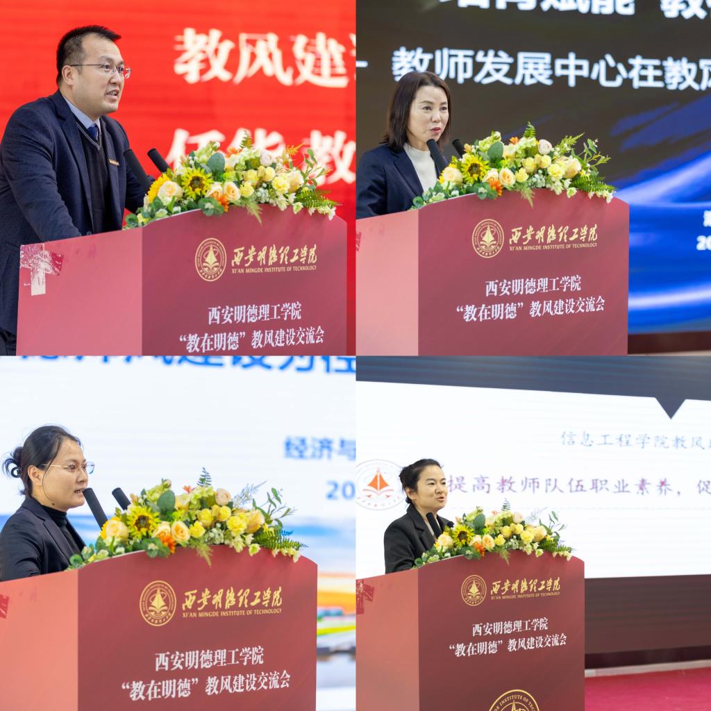 教务处、教师发展中心、经济与管理学院、信息工程学院分别介绍了教风建设开展过程、主要措施、成效特色、存在问题、改进措施等情况。