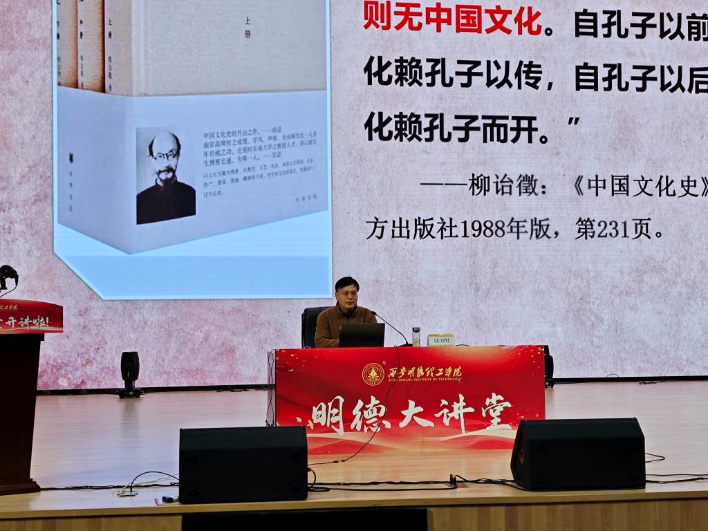 2024年11月25日晚,第六十一期“明德大讲堂”在四季廊桥报告厅隆重举行。本次讲座邀请到全国高校思政课名师工作室负责人、西安交通大学马克思主义学院陆卫明教授作题为“理想人格的塑造——基于《论语》的智慧”的专题讲座。讲座由马克思主义学院副院长惠斌主持。