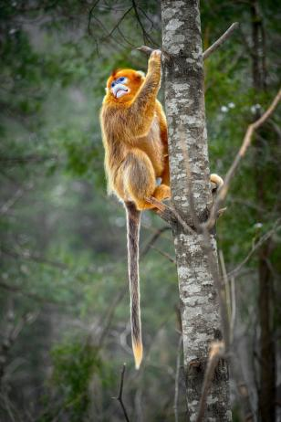 衡国良教授的作品《瞧这一家子》拍摄的是秦岭腹地的金丝猴,展现了秦岭金丝猴在自然环境中的生活场景。高大的树木、茂密的枝叶、清澈的溪流等元素共同构成了金丝猴生活的生态环境。这组照片不仅展示了秦岭金丝猴的美丽和可爱,更提醒人们要关注这些珍稀动物的生态保护。秦岭金丝猴是国家一级保护动物,它们的生存状况直接反映了生态环境的健康状况。衡国良同时入展作品还有《登高望远》。
