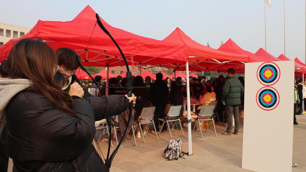 在民族文化展位体验区,设置特色美食、风俗习惯、民族打卡三个内容,有维吾尔族的葡萄、哈密瓜、果干、烤馕饼,藏族的风干牦牛肉,蒙古族的马奶酒、鲜奶锅巴等各色美食,还有投壶、射箭、踢毽子、套娃、竹竿舞、猜灯谜等民族趣味游戏,学生现场制作漆画、扎染、服饰模型、藤编等,呈现出我国各民族的民族服饰、音乐、美食、艺术等特色文化。师生们通过欣赏民族展品、品味民族美食、学习民族习俗、体验民族游戏,深刻感悟我国多元的文化魅力和各民族的独特风情,切身体会到中华民族大家庭的温暖与和谐。