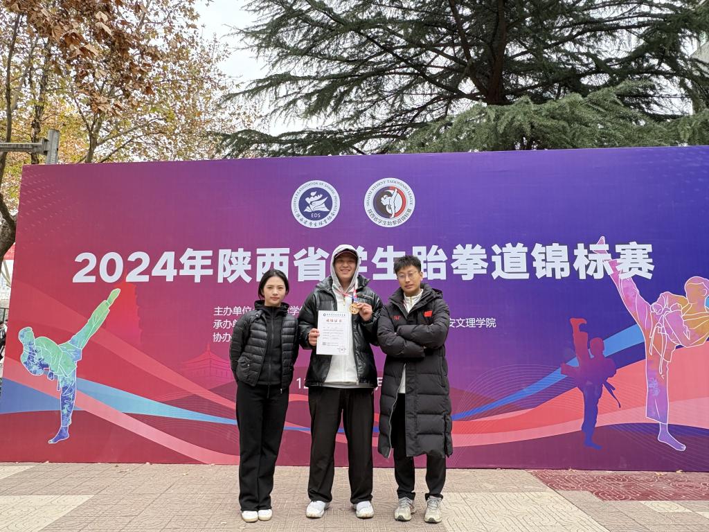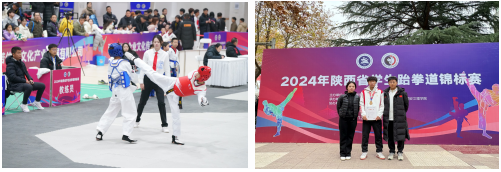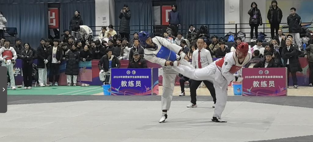 2024年陕西省学生跆拳道锦标赛于12月9日在西安文理学院圆满落幕,此次比赛汇聚了包括西安交通大学、西北工业大学、西安电子科技大学、西安体育学院等30多所体育实力强劲的高校参加。beat365跆拳道队自2022年成立起首次代表学校参加陕西省锦标赛,由体育教研室的李鑫老师作为领队,马俊豪老师、王静妍老师担任教练员带领13名学生运动员参赛,并在此次比赛中大放异彩,共斩获三金三铜,载誉而归!