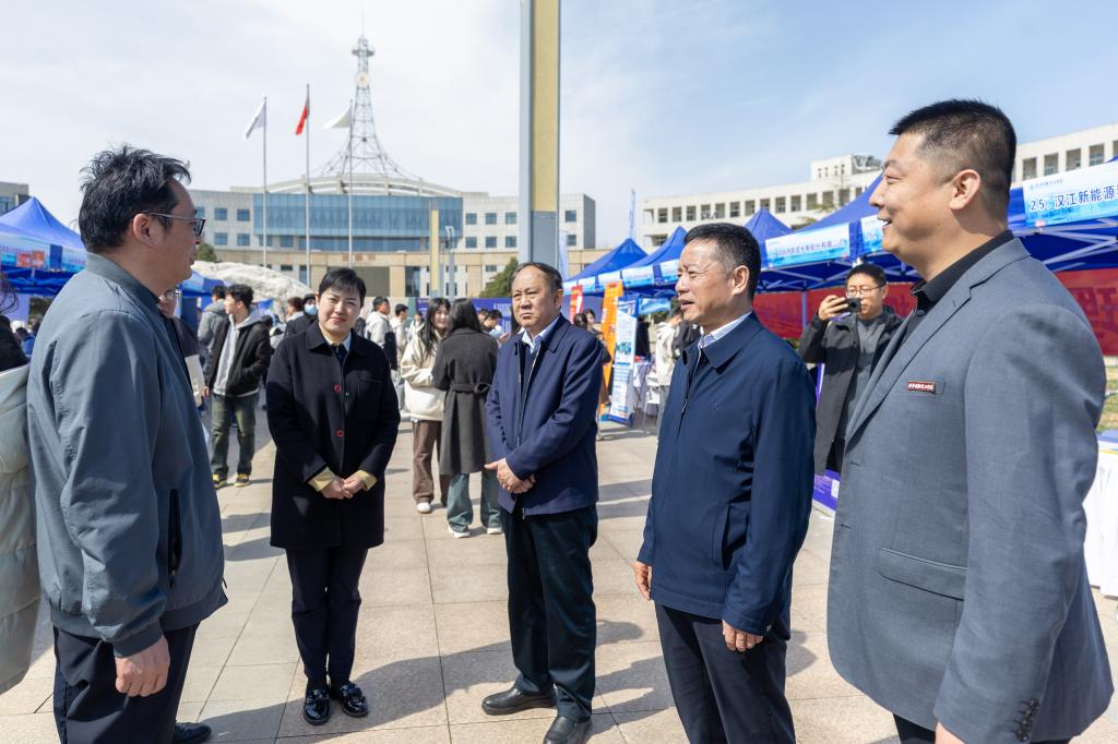 学校校长王志刚、党委书记马川鑫在校长助理刘佳的陪同下深入招聘会现场,与各区县人社部门、企业代表亲切交流,调研当前就业形势、了解企业岗位需求、学生求职观念等情况。期间,还与部分校友企业单位进行了交流,了解校友企业的发展和招聘需求,对校友关心支持母校发展、帮助学生高质量就业表示衷心感谢,并希望企业界校友在推动产教融合、深化校企合作等方面为学校贡献智慧力量。