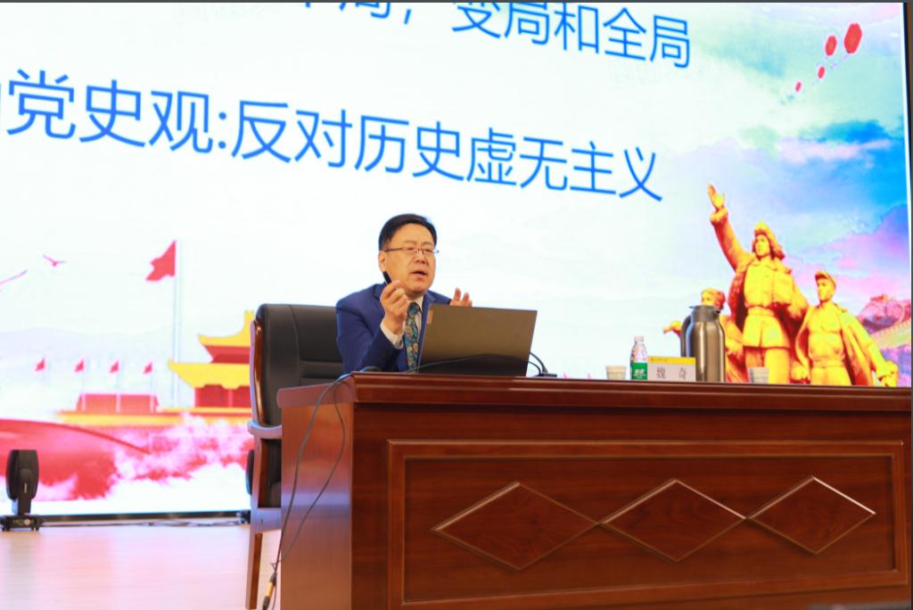 讲座中,魏奇教授凭借深厚的学术功底和丰富的教学经验,深入浅出地解读了毛泽东诗词背后的历史故事与时代意义。他结合具体的历史事件与时代背景,生动呈现了《沁园春・长沙》《七律・长征》《人民解放军占领南京》等经典篇目。在讲解《沁园春・长沙》时,魏奇教授详细描述了当时毛泽东身处的社会环境,以及青年毛泽东心怀天下、立志改变社会现状的豪情壮志,让同学们深刻体会到“恰同学少年,风华正茂;书生意气,挥斥方遒” 中所蕴含的青春激情与家国情怀。