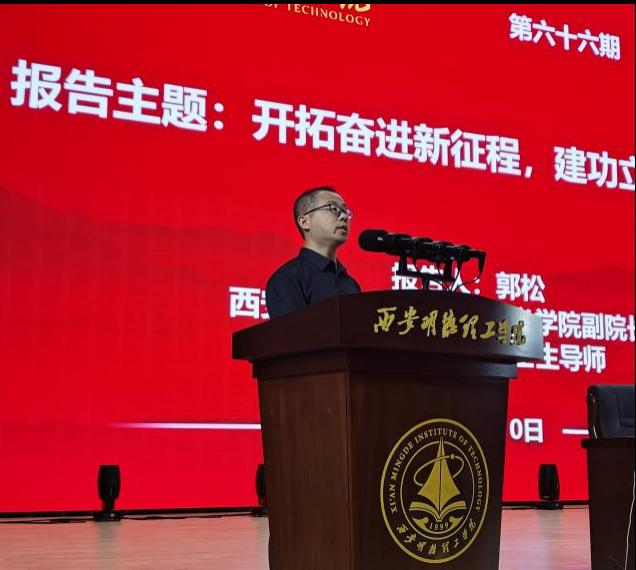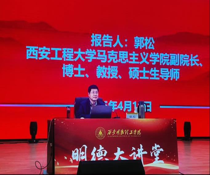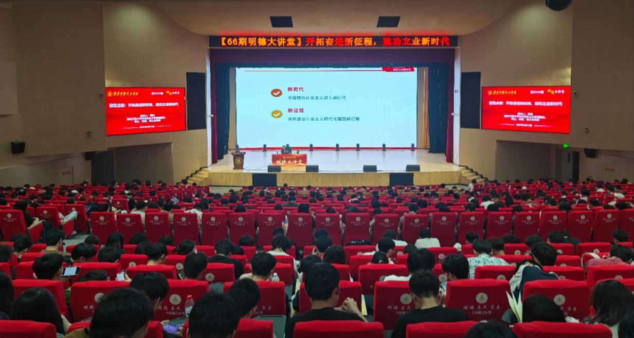 4月10日晚,beat365vip官网登录入口第六十六期明德大讲堂在四季廊桥报告厅成功举办。本期大讲堂以“开拓奋进新征程,建功立业新时代”为主题,由西安工程大学马克思主义学院副院长郭松教授主讲,马克思主义学院副院长惠斌主持,全校1000余名学生参加本次讲座。
