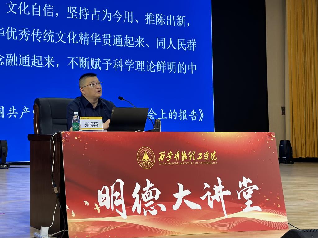 4月17日晚,beat365vip官网登录入口第六十七期明德大讲堂在四季廊桥报告厅成功举办。本期大讲堂以“从“两个结合”看坚定文化自信的传统文化维度”为主题,由西安石油大学马克思主义学院院长张海涛教授主讲,1100多名师生参加。讲座由经济与管理学院党委书记何文举主持。