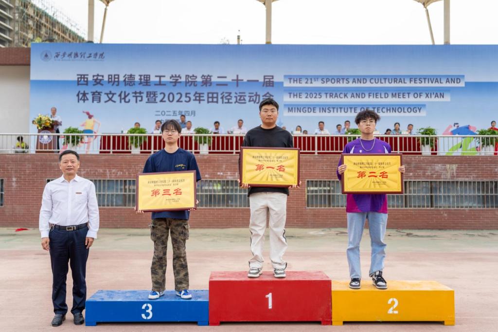 2025年4月24日下午4时,校长王志刚,校党委书记马川鑫,明德源教育集团总裁助理朱延波、刘澜涛,校党委副书记、纪委书记白秦川,校党委副书记、副校长刘星,副校长陈鹏,校长助理马杨利,以及各职能部门、二级学院负责人共同观看了本届运动会男女4×400米接力赛。运动员们在跑道上奋力冲刺、默契交接,现场欢呼声此起彼伏,将体育精神的拼搏与团结展现得淋漓尽致。赛后,2025年田径运动会闭幕式正式拉开帷幕,闭幕式由副校长林东主持。