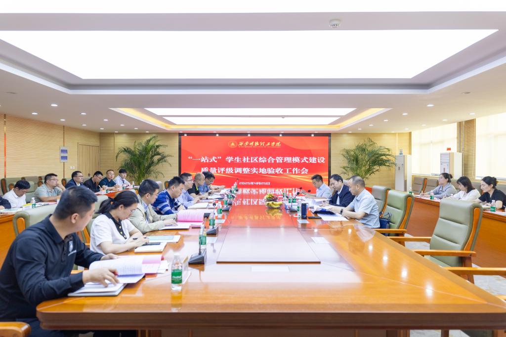 2025年4月25日,陕西省委教育工委、教育厅对beat365“一站式”学生社区建设开展质量评级验收工作。质量评级专家组西安交通大学学工部副部长李新安、西北大学学工部副部长杨军良、陕西科技大学思政课科长朱亮赴beat365开展实地验收。学校党委副书记、副校长刘星,学校办公室、党委组织宣传部、党委学生工作部、人力资源处、教务处、招生就业中心、财务处、后勤管理处、网络信息化中心、校团委等部门负责人,各学院党委(党总支)书记、副书记参加评级验收活动。