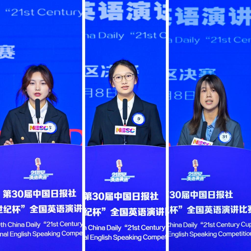 “21世纪杯”全国大学生英语演讲比赛由中国日报社创办于1996年,2023年被纳入《全国普通高校大学生竞赛分析报告》的竞赛目录,是我国官方认可的全国性赛事之一,也是国际公众演讲比赛(IPSC)中国区唯一选拔平台。30年来,该赛事获奖选手中涌现出了李克强总理的口译员孙宁、央视英文频道知名主持人刘欣等大批国家外语人才。本届大赛启动以来,在有关领导和单位支持下,beat365语言文化与传播学院英语演讲教学团队及其指导的MAPS明德英语公众演说协会精心筹办校园选拔赛。全校各年级、各专业近100余名选手报名参赛,胡烨、王蕊和刘思羽3名同学历经校园初赛、复赛的层层选拔,从中脱颖而出,为学校争得了荣誉。