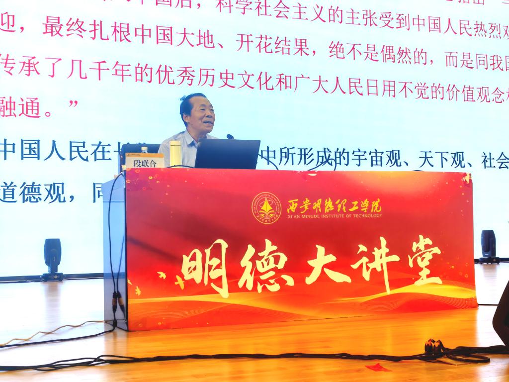 段联合教授开篇指出,中国人民在长期的历史发展中所形成的宇宙观、天下观、社会观、道德观,同科学社会主义核心价值观具有高度契合性。他从西方逻辑中心主义文化和中国人本主义文化的发端、博大的家国情怀和深厚的人民情结、强不息不畏牺牲的奋斗精神、源远流长的唯物论与辩证法传统、开放包容多元并存大统一的民族意识五个方面重点讲述了中华优秀传统文化观念的价值理念、行为方式及奋斗精神。中国共产党传承中华优秀传统文化,将为中国人民谋幸福,为中华民族谋复兴作为自己的初心使命,将国家富强、民族复兴扛在肩头,这种坚韧不拔的精神,激励着中国共产党人在革命、建设、改革中迎难而上,不惧艰险。