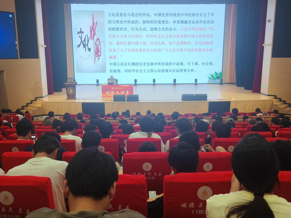 在报告的最后,段教授以源远流长的唯物论与辩证法传统,赋予中国共产党科学的思维方法为切入点,从王充“天地合气,万物自生”的唯物观,到《孙子兵法》的辩证谋略,让党能透过现象看本质,把握历史主动;从张骞通西域到“各美其美,美美与共”,为党凝聚团结力量、推动国家统一与民族复兴提供了强大的文化支撑。这些文化基因,深刻影响并塑造着中国共产党的初心与使命。