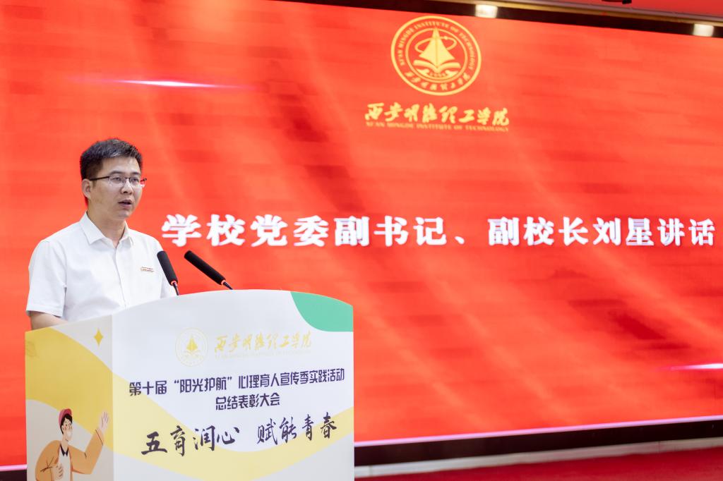 最后,学校党委副书记、副校长刘星做总结讲话,他充分肯定了第十届心理育人宣传季实践活动取得的优异成绩,向受到表彰的先进集体和个人表示热烈祝贺。同时,他强调,心理健康教育是学校立德树人工作的重要组成部分,关乎学生的全面发展和健康成长。学校要坚持将“健康第一”的理念贯穿学生管理全过程,坚持“五育融合”的育人目标,扎实推进心理实践活动和心理咨询服务同步提质,持续擦亮“明心育人”心理健康工作品牌,进而不断推进心理健康教育工作高质量发展,奋力谱写明心育人的新篇章!