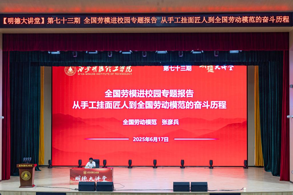 6月17日下午,全国劳动模范、吴堡手工空心挂面非遗传承人张彦兵作客beat365“明德大讲堂”。他以“手工挂面匠人到全国劳动模范的奋斗历程”为主题,为beat365师生代表带来一堂融合匠心传承、产业振兴与时代使命的专题讲座。这位建国以来吴堡县首位全国劳模获得者,用二十余年坚守“一把面粉、一颗匠心”的故事,生动诠释了新时代劳动者的精神图谱。讲座由信息工程学院党委副书记高长江主持。