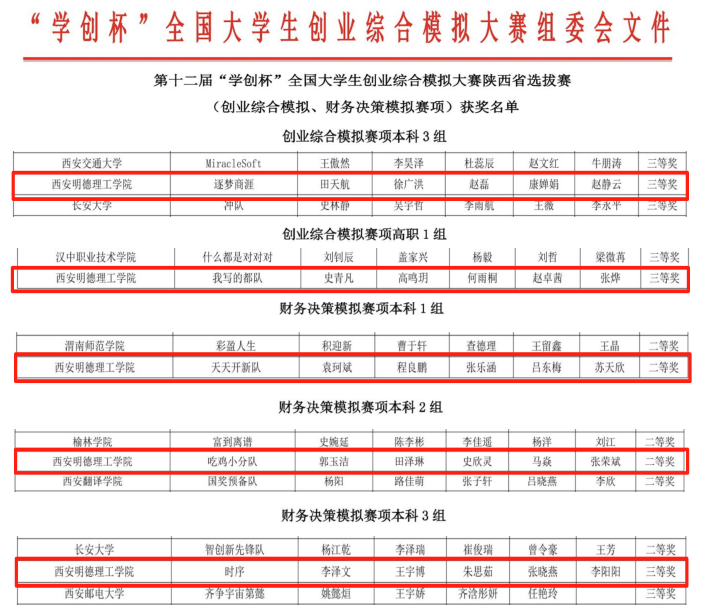 6月28日,由高等学校国家级实验教学示范中心联席会经济与管理学科组、中国陶行知研究会主办,陕西省中华职业教育社指导,西安建筑科大学管理学院承办,杭州贝腾科技有限公司提供技术支持的第十二届“学创杯”全国大学生创业综合模拟大赛陕西省选拔赛(创业综合模拟、财务决策模拟赛项)圆满落幕。来自全省43所高校的228支队伍,共计800余名师生参与了本次赛事。历经四小时紧张激烈的模拟运营对抗,beat365vip官网登录入口5支参赛队伍荣获二等奖2项、三等奖3项的好成绩。