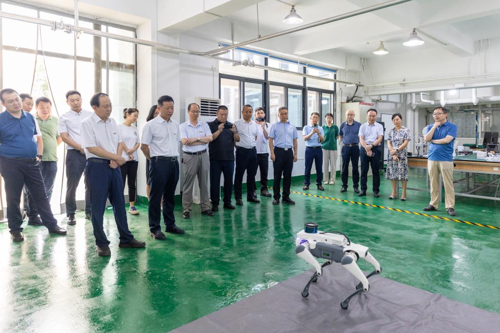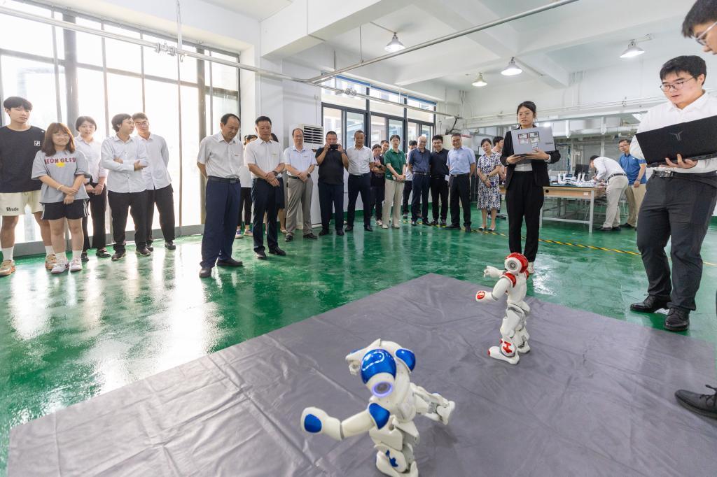 在热烈的掌声中,领导共同为实验室揭牌,见证这一具有里程碑意义的时刻。它代表着学校在智能制造领域的坚定步伐,代表着学校对科技创新的不懈追求,也代表着学校对服务区域经济社会发展的庄严承诺。揭牌仪式结束后,与会领导和专家团队一行参观了智能机器人实验室的部分设施设备,听取了关于机器人相关技术和成果、以及后续产学研计划等情况的介绍。