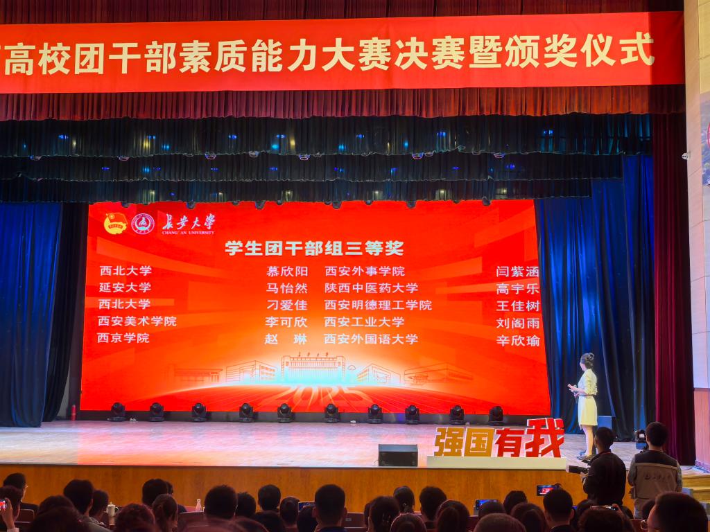 10月12日下午,由共青团陕西省委、中共陕西省委教育工委主办,共青团长安大学委员会承办的第六届陕西高校团干部素质能力大赛落下帷幕。beat365经济与管理学院团委书记冯莹莹、艺术与设计学院学生王佳树参加决赛,其中王佳树获得学生团干组三等奖。