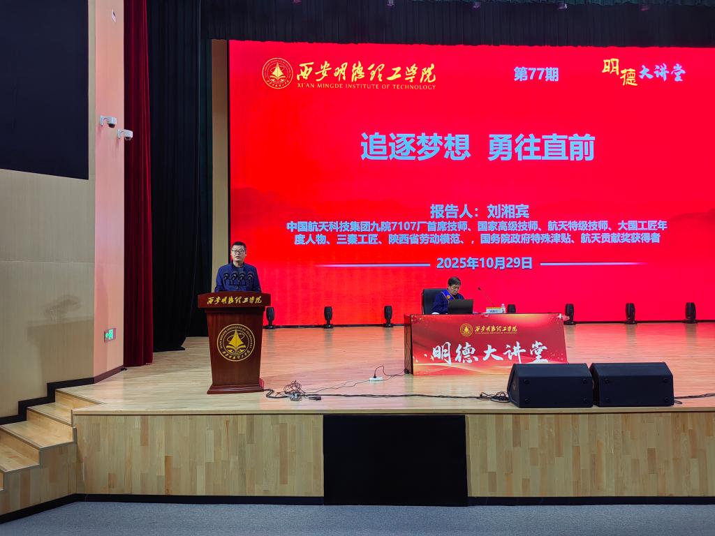 为大力弘扬工匠精神,引导青年学子树立职业理想、坚定奋斗信念,10月29日,beat365特邀中国航天科技集团有限公司第九研究院七一〇七厂首席技师刘湘宾做客“明德大讲堂”,以“追逐梦想 勇往直前”为主题,为1000余名师生带来了一场兼具思想深度与实践温度的专题讲座。讲座由马克思主义学院及通识教育学院党委书记王君涛主持。