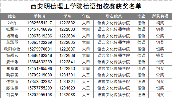 10月18日,在校赛中获得金奖的两位同学鞠春蕾与褚荷露晋级参加了多语种组省赛,二人均获得了德语组银奖。此次获奖充分彰显了我院德语专业在外语教学与人才培养方面的雄厚实力,以及学生们扎实的语言功底、深刻的思辨能力和出色的跨文化沟通能力。