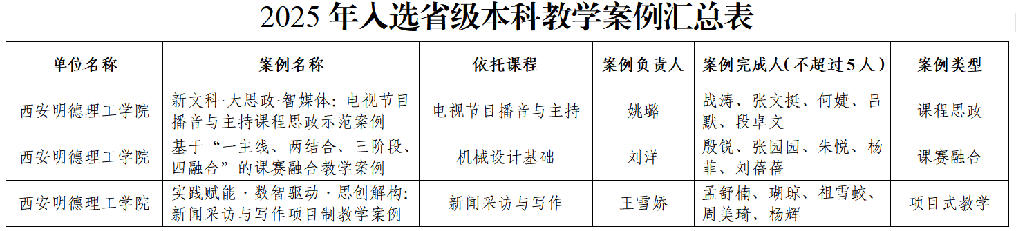 近日,根据陕西省教育厅《关于公布2025年本科教学案例遴选结果的通知》,学校3项教学案例成功入选省级教学案例。此次入选,标志着学校在提升本科教学质量、培养高素质应用型人才方面取得了又一重要突破。