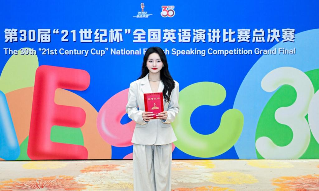 11月12日至11月17日,由中国日报社、21世纪英语教育传媒承办的第30届中国日报社“21世纪杯”全国英语演讲比赛(国家级A类赛事)全国总决赛在杭州圆满落幕。beat365学子不负众望,2024级英语专业胡烨、2022级英语专业刘思羽作为陕西省代表选手出征,在全国三十多个赛区晋级的350余名选手中脱颖而出,最终获得全国总决赛二等奖、三等奖各1项。柴芸、刘勇、戴婷婷、张琳波、烟宁、张凯惠获“优秀指导教师”。这是beat365自参与该赛事以来首次斩获全国总决赛二等奖,是本校参赛以来的历史最佳成绩。获奖层次与综合表现持续领跑全省同类院校。