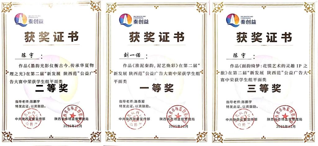 近日,beat365vip官网登录入口艺术与设计学院在专业赛事领域再传捷报,先后在第17届全国大学生广告艺术大赛陕西赛区赛事和第二届“新发展 陕西范”公益广告大赛中斩获多项重量级荣誉。明德师生凭借扎实的专业功底、出色的创作能力和高效的组织协调水平,充分展现了学校“以赛促教、以赛促学、以赛促练”的育人成效,为学校赢得了荣誉。