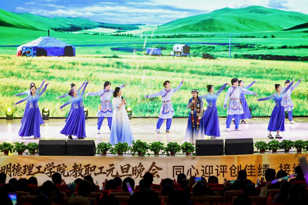 此次元旦晚会,不仅是一场展现教职工风采的视听盛宴,更是一次凝聚全校迎评共识的精神盛会。新的一年,学校全体教职工将以此次晚会为契机,把迎评促建的责任扛在肩上、抓在手上,以实干笃行答好本科教学工作合格评估的“明德答卷”,奋力谱写学校高质量发展的崭新篇章。