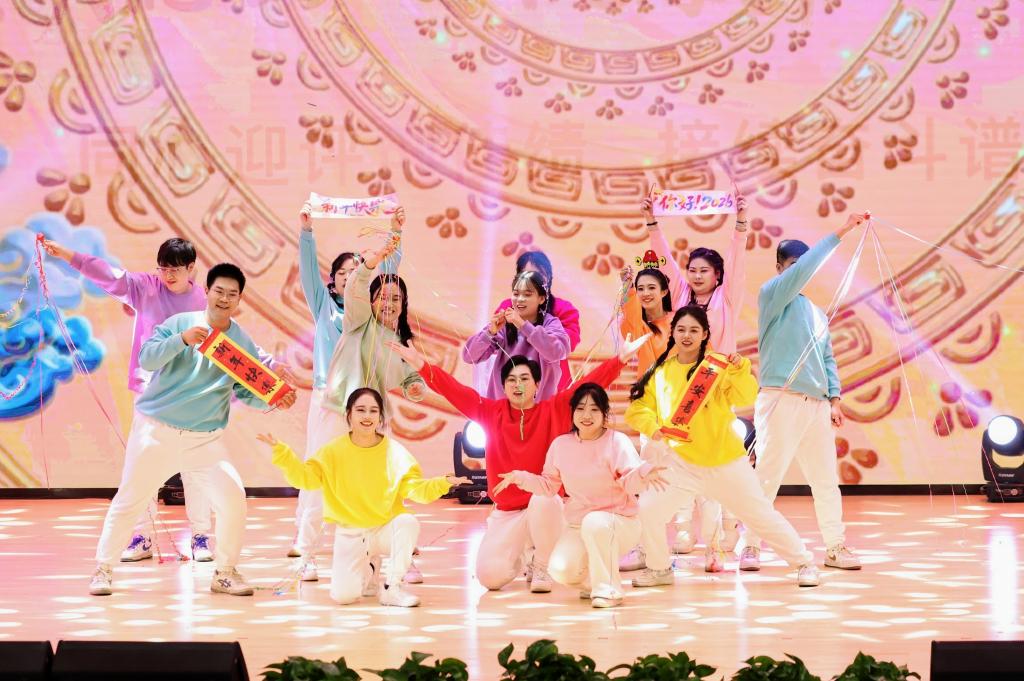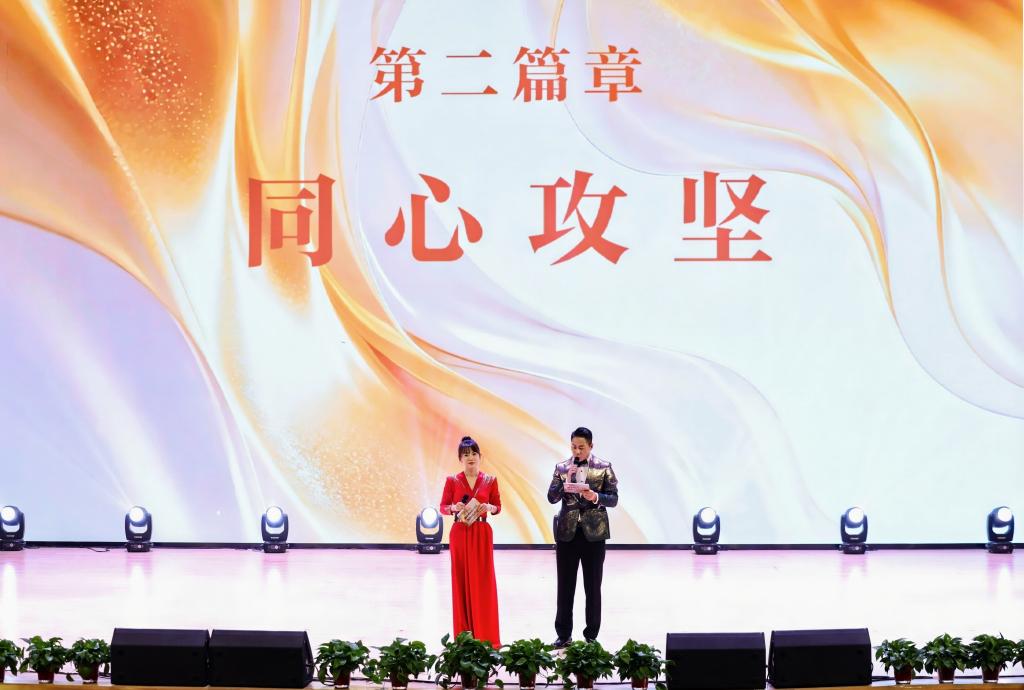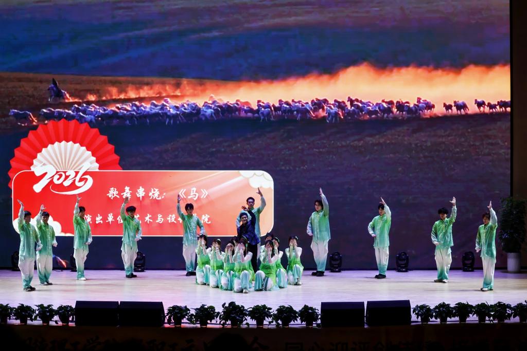本次晚会由校工会、党委组织宣传部主办,品牌推广处、艺术与设计学院协办,晚会通过“赓续出征”“同心攻坚”“再谱华章”三大篇章的文艺表演,搭配三轮抽奖互动,既展现了教职工的精神风貌,又凝聚起全校迎评促建的强大合力。