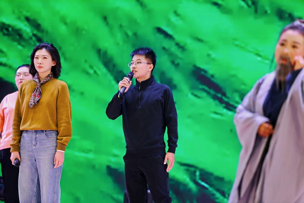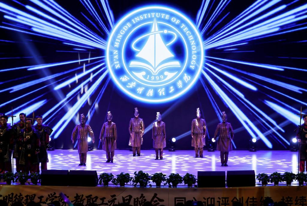 “赓续出征”篇章主要表达了传承办学历史文脉,勇担立德树人使命,奋力开启发展新征程。紧扣迎评使命,智能制造与控制技术学院的科技创意舞《秦俑情》融合传统与科技,诠释了学校在学科建设中为迎评夯实基础的探索;陕西金叶科教集团与学校联合演绎的原创朗诵《赤子明德·山海新章》,将集团支持与学校迎评的决心相融,诉说着明德人坚守教育初心、奋力迎评的使命;语言文化传播学院的创意演歌《上春山》旋律明快,校领导演唱的《我们走在大路上》更是唱出全体明德人迎评路上砥砺前行、一往无前的坚定信念。