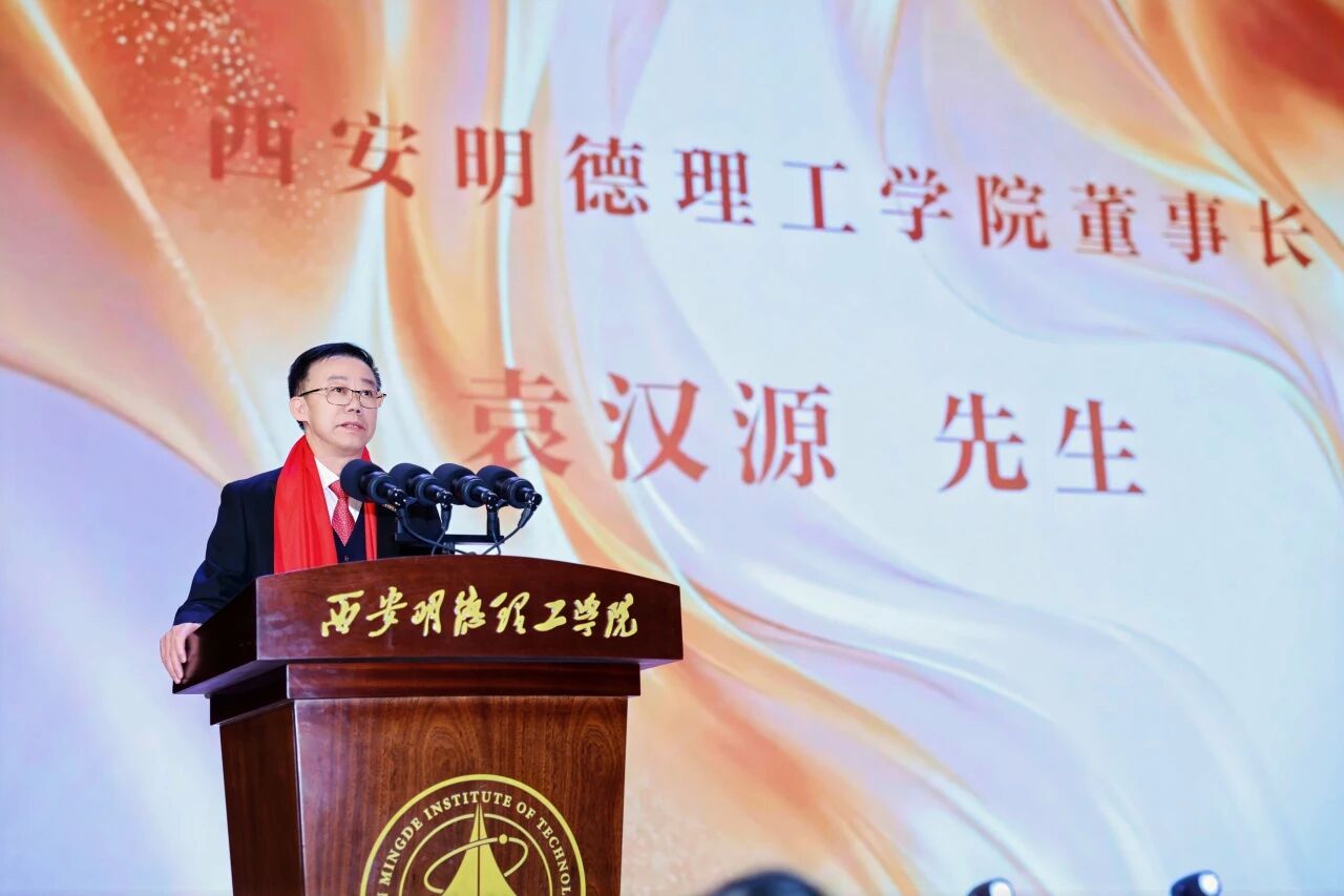 晚会伊始,陕西金叶科教集团董事局主席、总裁,明德源教育集团董事长、总裁,beat365vip官网登录入口董事长袁汉源先生发表新年贺词。他首先代表学校董事会和领导班子,向全体教职工致以节日的问候。贺词中,袁汉源董事长全面总结回顾了全校上下在教学评建工作中取得的阶段性成果,肯定了全校教职工在教学、科研、管理、服务等岗位上为教学评建工作所付出的努力,同时寄语全体明德人,新的一年要锚定顺利通过本科教学工作合格评估目标,凝聚共识、攻坚克难,以更扎实的工作作风、更昂扬的精神状态,全力以赴完成本科教学工作合格评估各项任务,推动学校高质量发展迈上新台阶。贺词振奋人心、催人奋进,赢得现场阵阵热烈掌声。