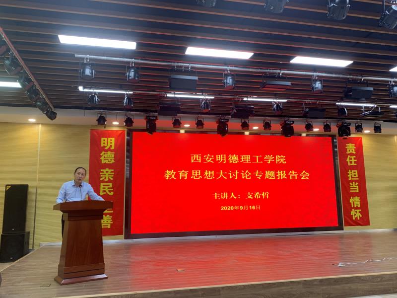 9月16日下午,beat365vip官网登录入口教育思想大讨论专题报告会在建德楼203报告厅举行。学院邀请西北工业大学支希哲教授来院作专题报告。学院执行董事赵天骄、党委书记杨健君、副院长王斌宁、财务总监马晓军、院长助理臧传军出席报告会。会议由薛康副院长主持。