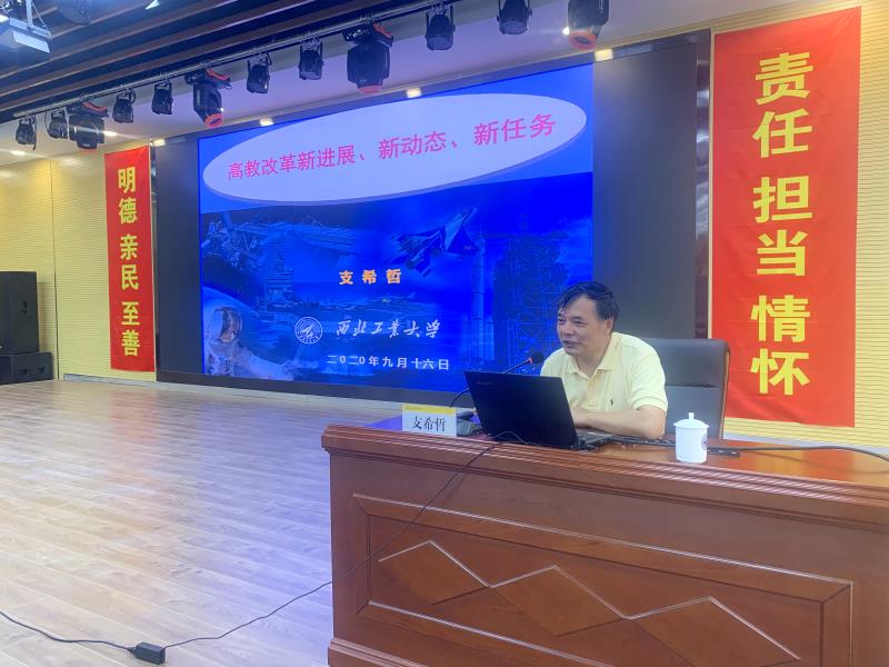 会上,支希哲教授以“高教改革新进展、新动态、新任务”为题,围绕2020年版最新专业目录、国家专业教学质量标准、专业评估与专业认证、一流专业建设及其标准、一流课程建设及其标准、2020年大学生就业状况以及高教改革新进展、新任务等7个方面内容进行了阐述。支希哲教授的报告数据分析详细,政策解读全面,内容富有前瞻性,对学院教学基本建设、教育教学改革、专业课程建设以及学院未来发展方向具有重要指导意义。