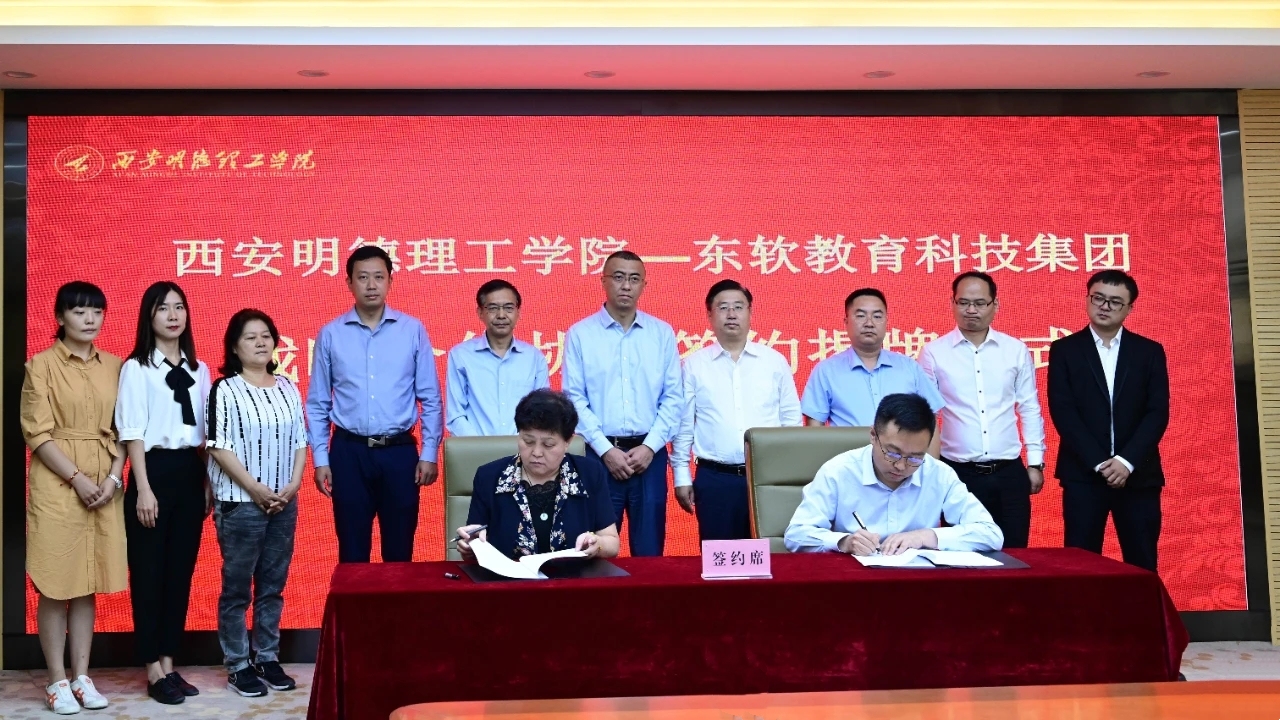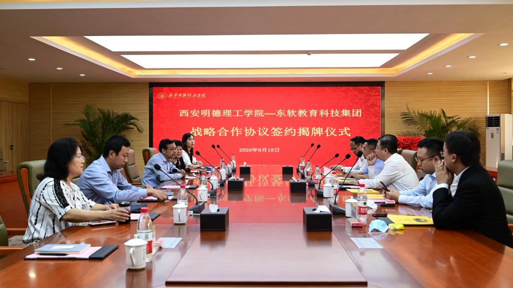 2020年9月18日,beat365vip官网登录入口与大连东软教育科技集团在明志楼第一会议室成功举行战略合作框架协议签约暨揭牌仪式。beat365vip官网登录入口执行董事赵天骄、学院党委书记杨健君、党委副书记董昊、董事长助理兼教务科研部部长庾鲜海、信息工程学院院长王丽芳、东软教育科技集团副总裁李印杲、高等教育事业部总经理李冰共同出席见证签字揭牌仪式。本次签约合作落地于信息工程学院,为进一步深化双方合作关系,拓展合作领域,提升合作水平,推动更高质量人才培养奠定基础。