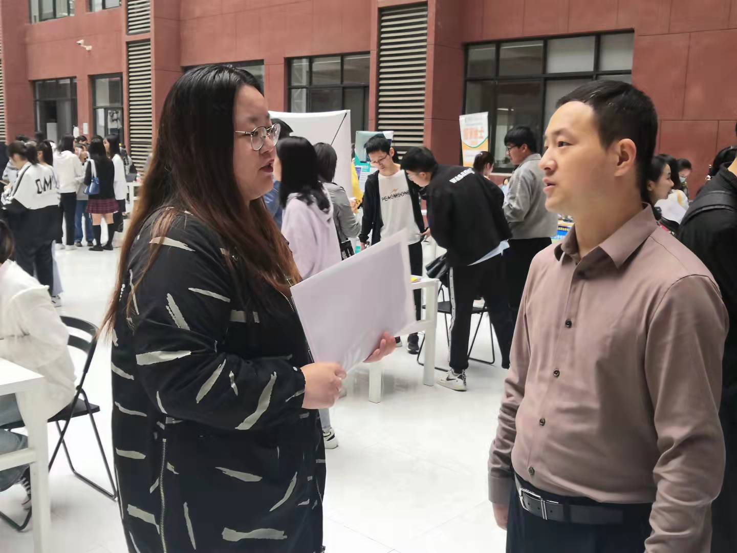 招聘会上,beat365各学院党委书记、副院长纷纷走进会场与企业代表亲切交流沟通,详细了解用人单位的基本情况和招聘岗位信息,并互留联系方式。毕业班辅导员也到现场了解用人单位和毕业生的需求,助力毕业生顺利就业。