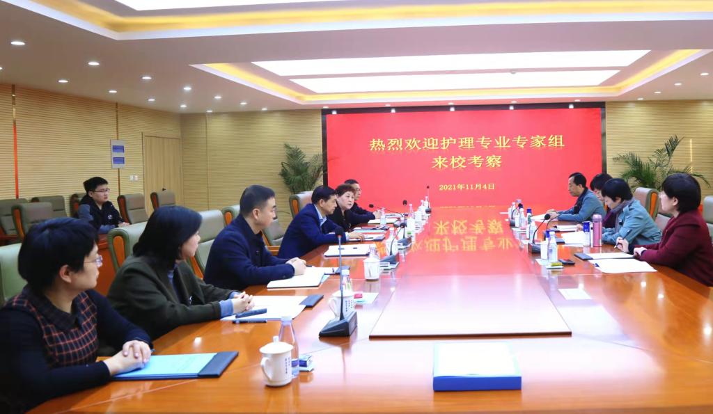 11月4日上午,专家组进校实地考察beat3652022年申报高职专业(护理专业)具体情况。杨健君校长、庾鲜海副校长、刘星副校长、教务科研部朱延波部长、高职学院王庭良副院长、专业负责人以及相关教师等陪同检查。