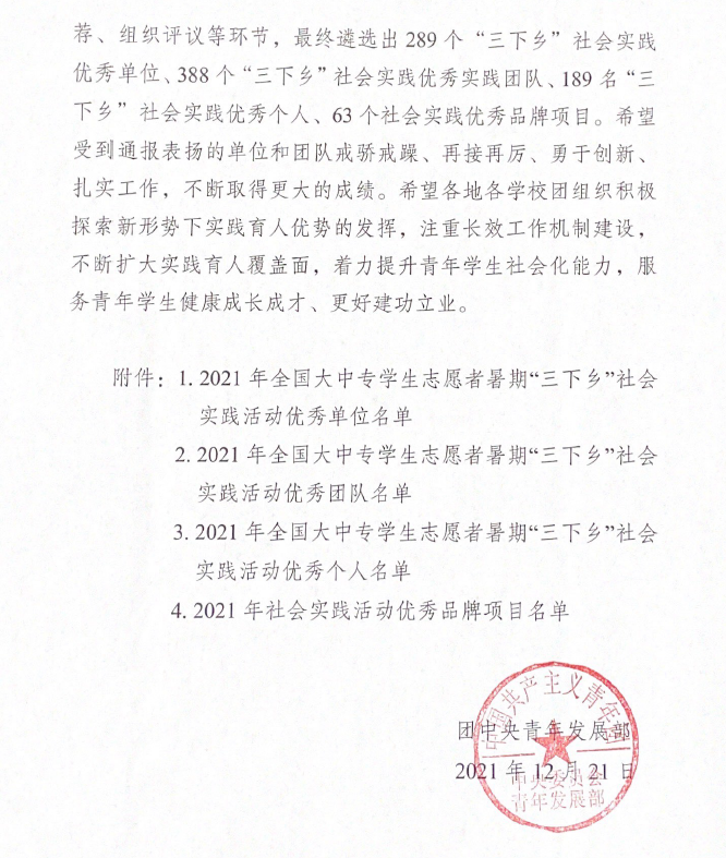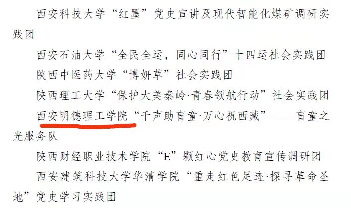 近日,共青团中央、全国学联表彰了在2021年全国大中专学生志愿者暑期“三下乡”社会实践活动中表现突出的集体和个人。学校“千声助盲童•万心祝西藏”盲童之光社会实践服务队荣获团中央2021年全国大中专学生志愿者暑期“三下乡”社会实践活动优秀团队称号,是陕西省唯一一所民办院校获奖团队。