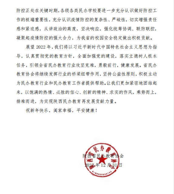 陕西省民办教育协会新年贺词