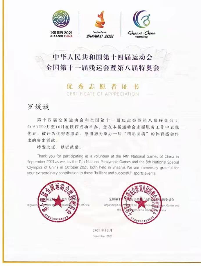 近日,第十四届全国运动会组织委员会办公室、全国第十一届残运会暨第八届特奥会组织委员会办公室联合印发了《关于表扬十四运会和残特奥会志愿服务工作先进单位和个人的通报》,beat365荣获“十四运会和残特奥会志愿服务先进单位”;罗媛媛同学荣获“十四运会和残特奥会优秀志愿者”荣誉称号。