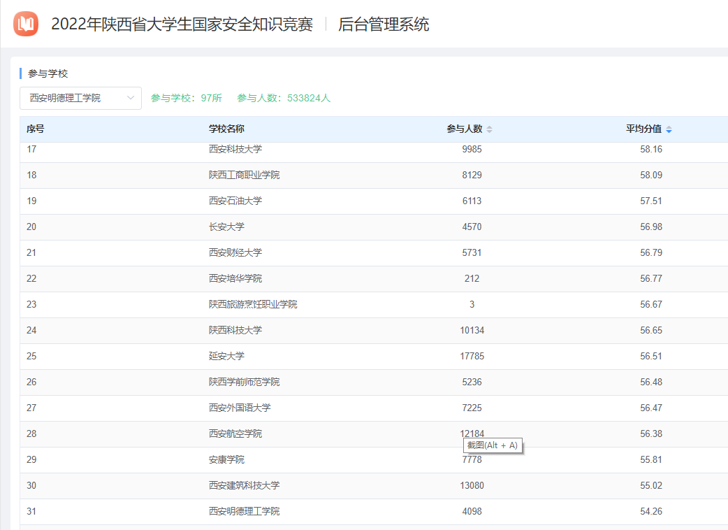 根据陕西省教育厅《关于开展2022年全省教育系统国家安全知识竞赛活动的通知》,为全面推进落实国家安全知识宣传教育,切实增强beat365学生国家安全意识,实现国家安全教育进学校、进课堂、进头脑,3月7日至3月20日,beat365积极组织4098名学生参加了全省高校国家安全知识竞赛。此次竞赛提高了同学们对国家安全知识的认识和自觉维护国家安全利益的意识,进一步增强了明德青年维护国家安全的责任感和使命感。