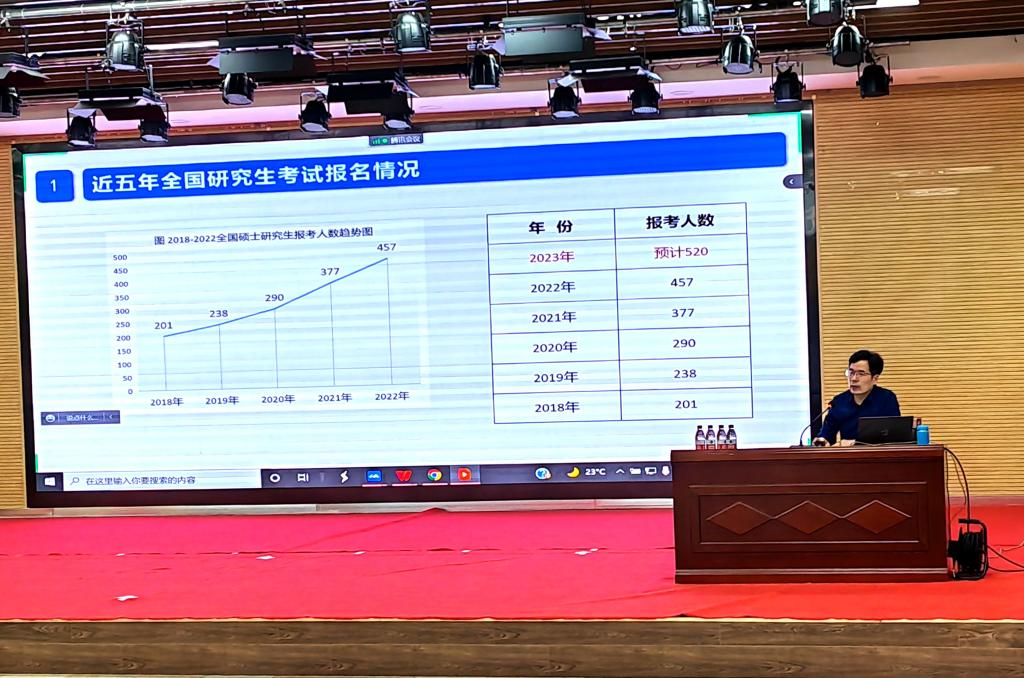 王波义老师重点从研究生考试形势、考试基本常识、考试科目,历年考研成果等四个方面进行详细分析和讲解,从针对考研计划制定、考研心态及作息习惯调整等方面对同学们进行了指导和鼓励,他希望同学们要认清形势、乘势而上、顺势而为,树立信心、认真备考。